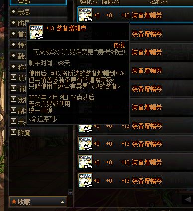 【4月9日前有效】【其他增幅券】+13装备装备券。+13装备增幅卷。寸头背包现货!