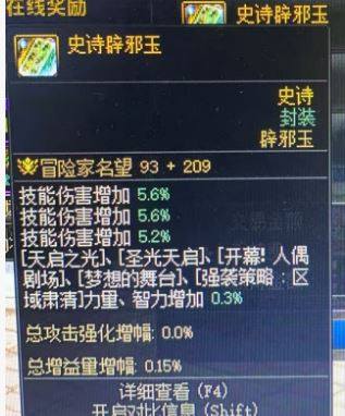 史诗16.4技工5.6+5.6+5.2+力量0.3%共16.4史诗技工名望302天龙背包现货