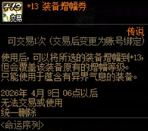 【4月9日前有效】【装备增幅券】【4月9日前有效】【装备增幅券】+13装备增幅卷/百分百成功