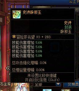 史诗辟邪玉技攻5.8+5.6+5.6+5.6(总共22.6技攻)名望376