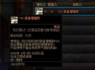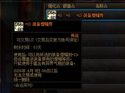 【4月9日前有效】【其他增幅券】【4月9日前有效】【装备增幅券】+13装备增幅卷/百分百成功(在线秒发)