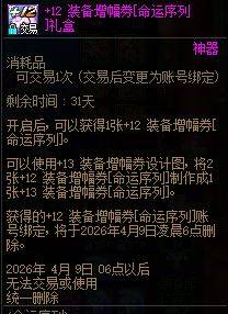 【4月9日前有效】【其他增幅券】12装备增幅券(命运序列礼盒)当面交易