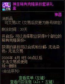 地下城与勇士绝版天空装扮/稀有克隆装扮套装礼盒交易