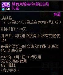 地下城与勇士绝版天空装扮/稀有克隆装扮套装礼盒交易