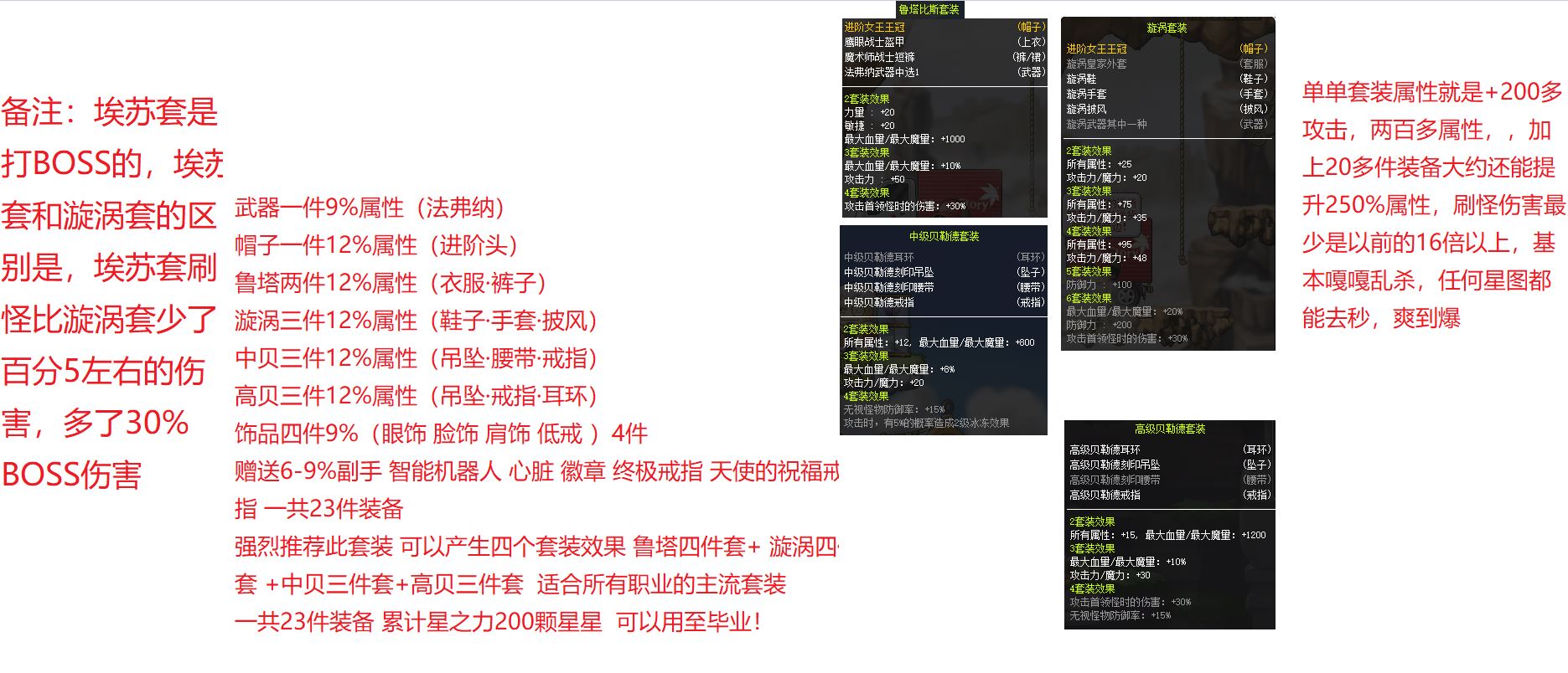 【一步到位,毕业套】全套200星·全12%属性(漩涡·塔鲁·高贝·中贝)·4套装·共23件·直接起飞