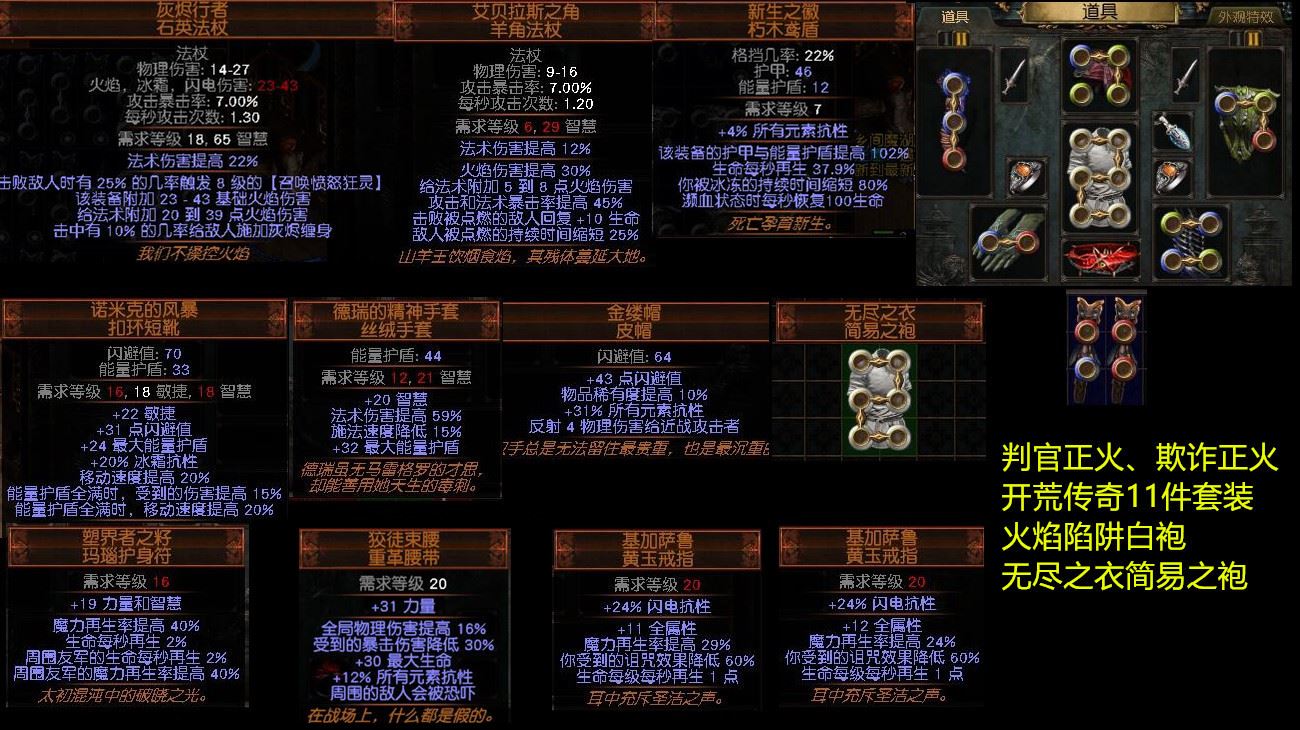 【判官正火、欺诈正火、剧情开荒传】判官正火、欺诈正火、剧情开荒传奇11件套装火焰陷阱白袍无尽之衣简易之袍●