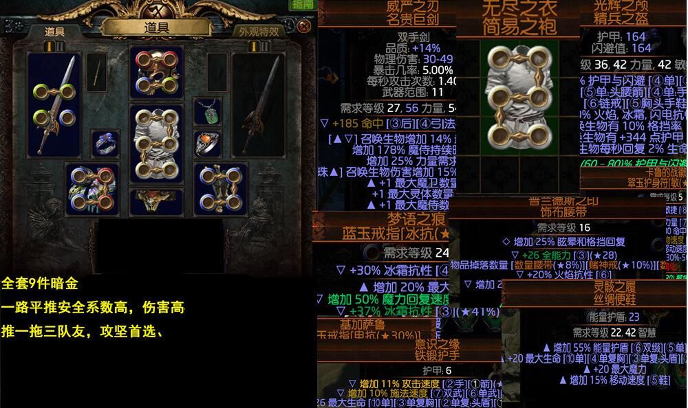 灵体鞋 召唤剑 白袍等全套暗金●女巫亡灵召唤四军卫横扫剧情平推大师