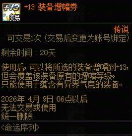 【4月9日前有效】【装备增幅券】【4月9日前有效】【装备增幅券】+13 装备增幅券,现货秒发,祝老板增幅顺利