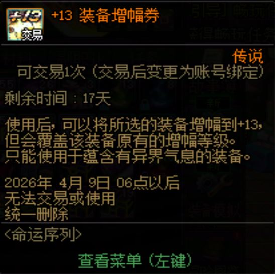 【4月20日前有效】【其他增幅券】【装备增幅券】+13装备增幅卷