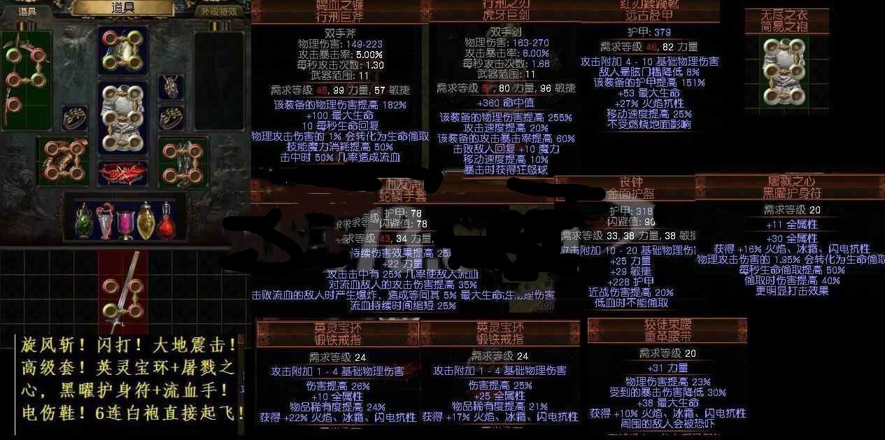 旋风斩闪打顶级跑剧情全装毕业套15件屠戮之心白袍无尽之衣英灵宝环丧钟全套药