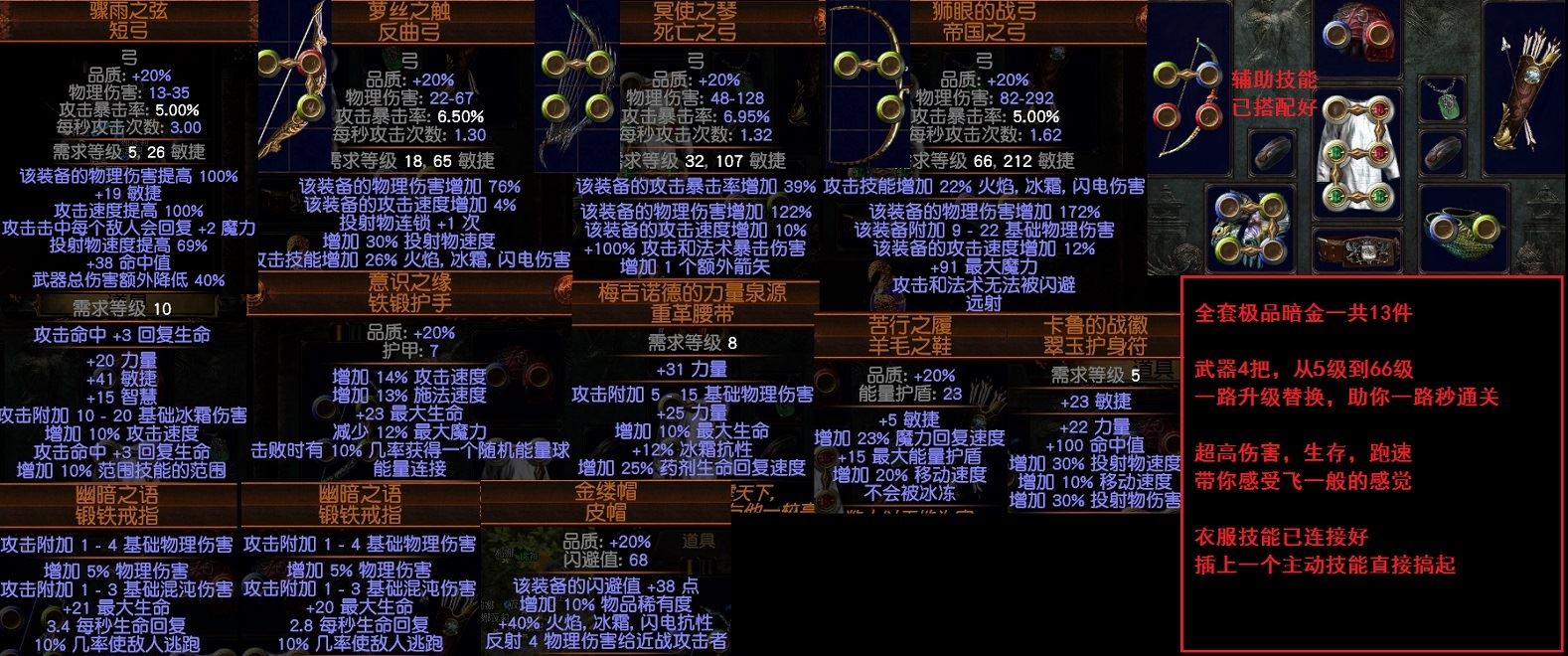 【游侠弓箭手】1-66级暗金传奇开荒套装,6L白袍●毒雨箭雨元素打击冰霜射击天灾