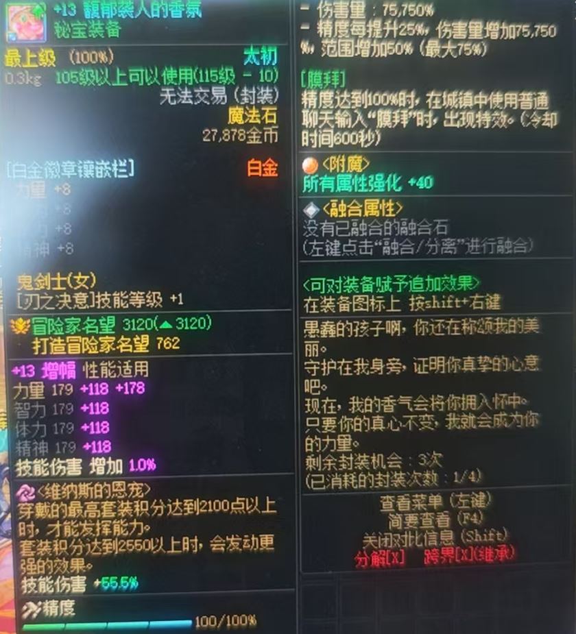 右槽秘宝魔法石满精炼馥郁袭人的香氛秘宝装备不包括增幅【大东网游精品店】