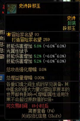 名望352的史诗级5.8+5.2+5.2的16.2技攻玉带光属性赋予【大东网游精品店】