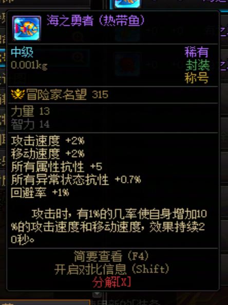 DNF2009年夏日称号 海之勇者 热带鱼