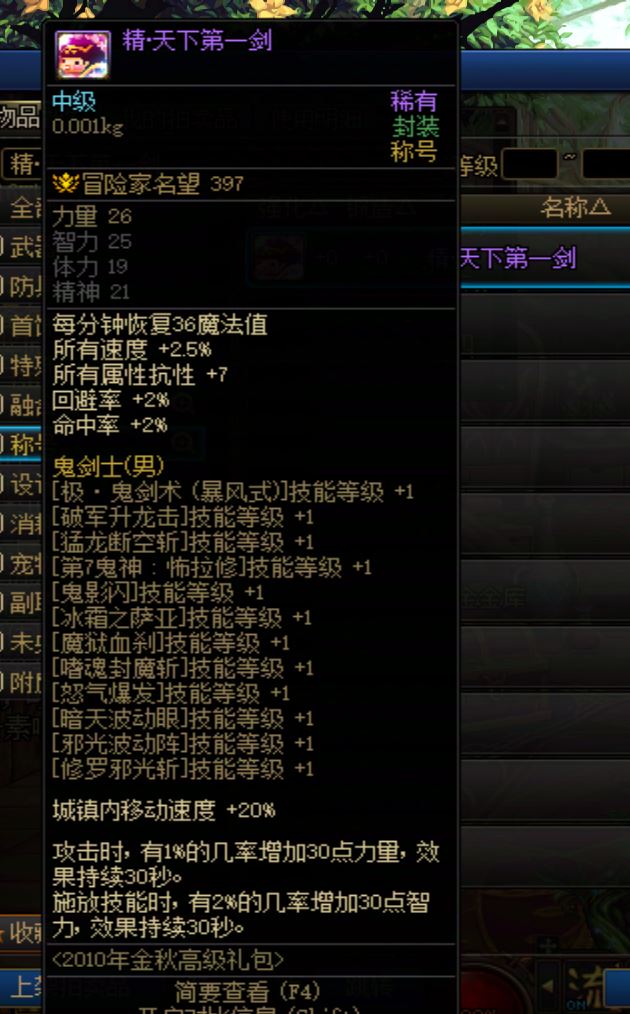 DNF2010年国庆称号 精·天下第一剑