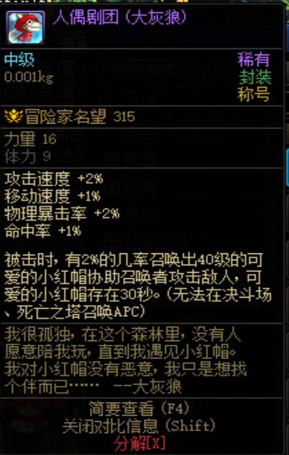 DNF2010年劳动节称号 人偶剧团 大灰狼