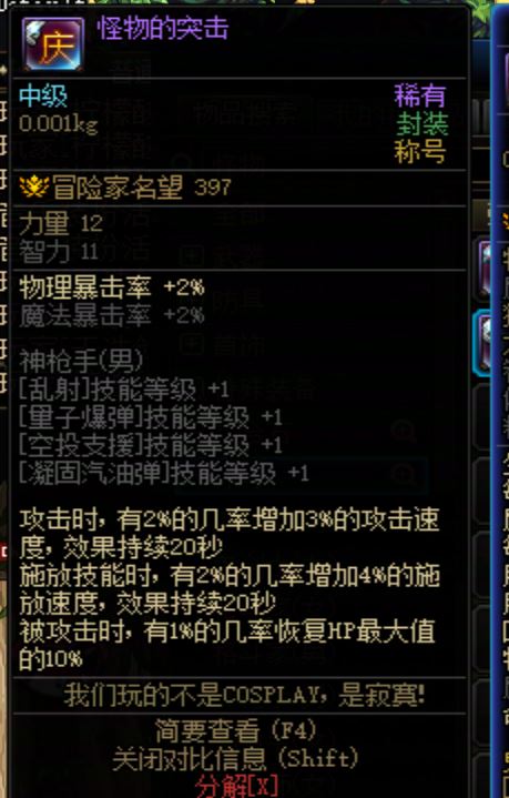 DNF2009年国庆称号 怪物的突击 男神枪手