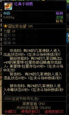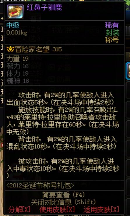 DNF2012年圣诞节称号 红鼻子驯鹿