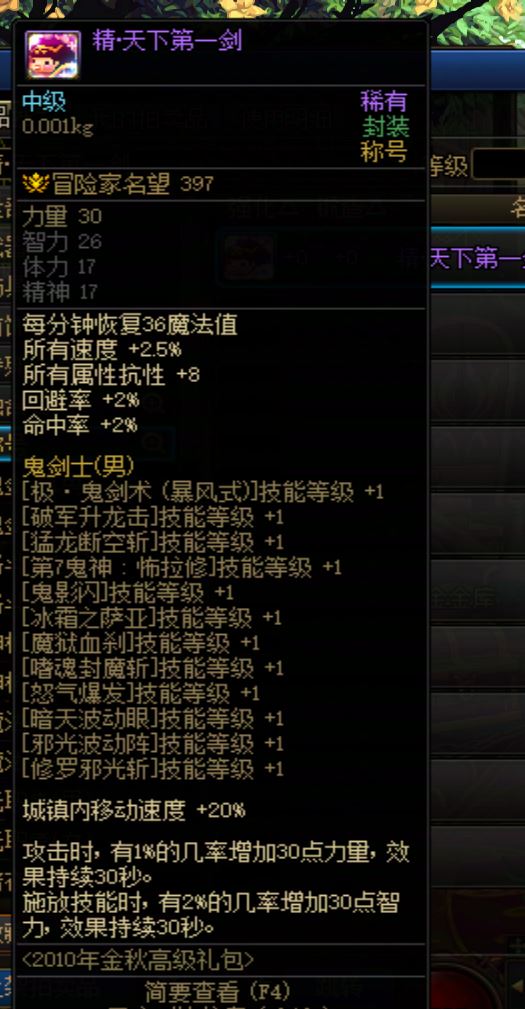 DNF2010年国庆称号 精·天下第一剑