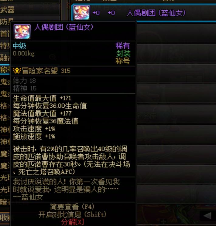 DNF2010年劳动节称号 人偶剧团 蓝仙女