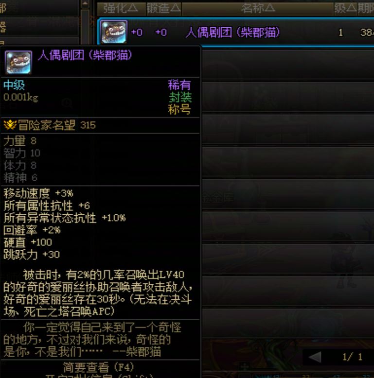 DNF2010年劳动节称号 人偶剧团 柴郡猫