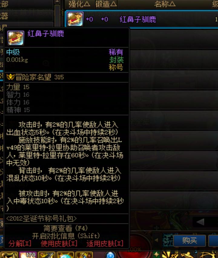 DNF2012年圣诞节称号 红鼻子驯鹿