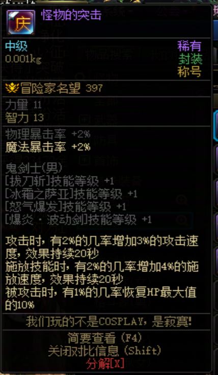 DNF2009年国庆称号 怪物的突击 男鬼剑士
