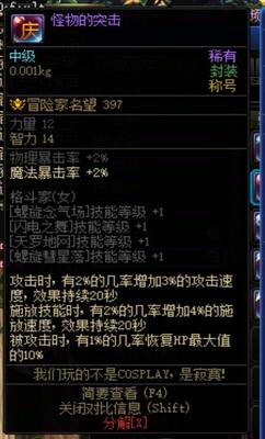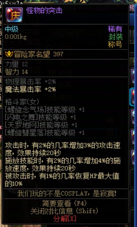 DNF2009年国庆称号 怪物的突击 女格斗家