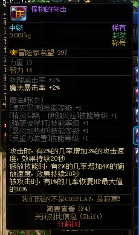 DNF2009年国庆称号 怪物的突击 女魔法师