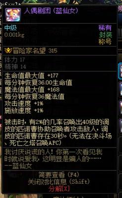 DNF2010年劳动节称号 人偶剧团 蓝仙女