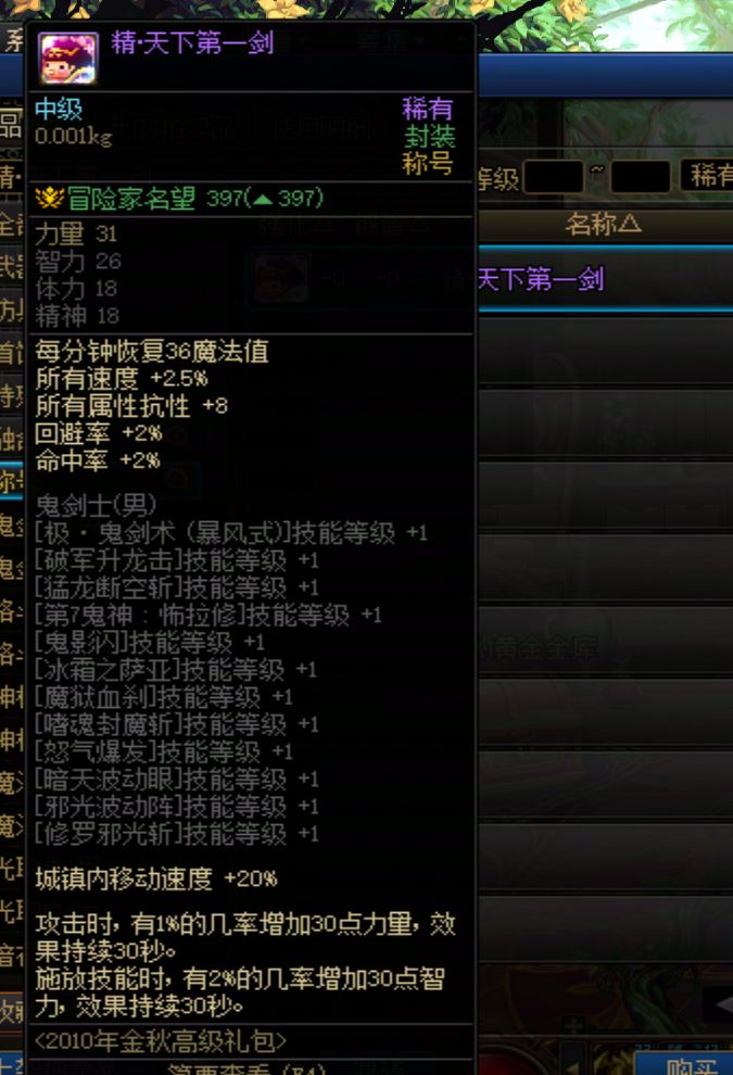 DNF2010年国庆称号 精·天下第一剑