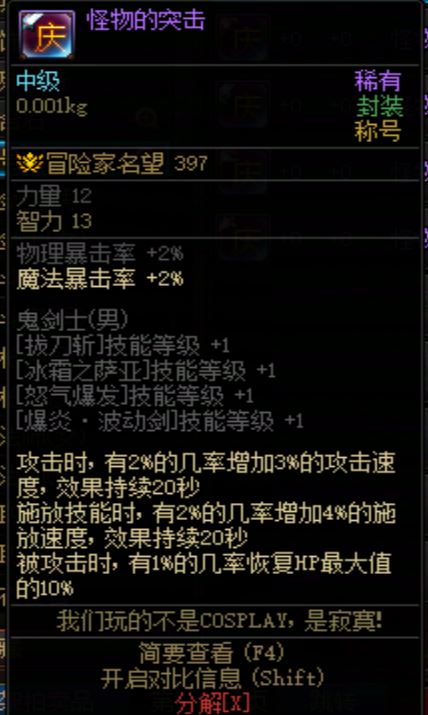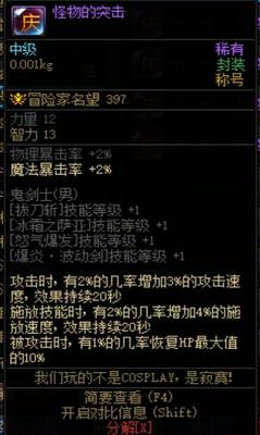 DNF2009年国庆称号 怪物的突击 男鬼剑