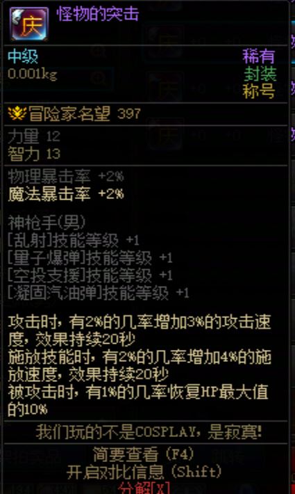 DNF2009年国庆称号 怪物的突击 男神枪手