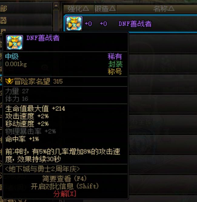 DNF2周年庆称号 DNF善战者