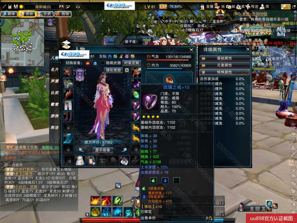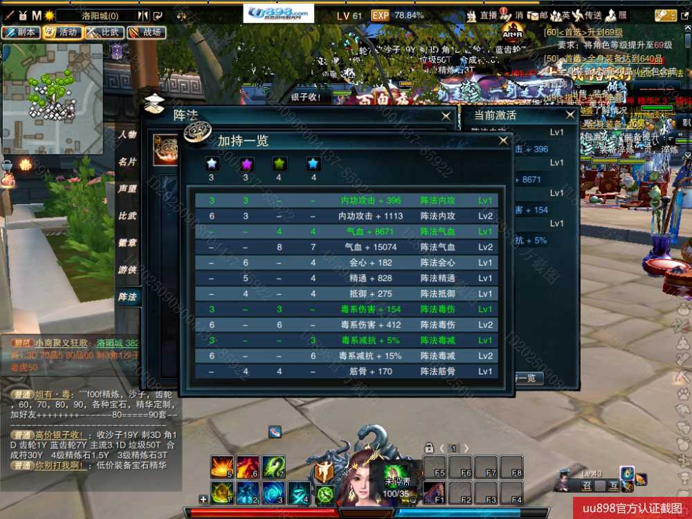 战力290多名,阵营战世界BOSS随便进,真绝已学,宠物仓库学了。全身极品装备,13.5血3.2W攻击2800属伤一级阵琉璃70706060.29颗3级宝石。能单带4W本