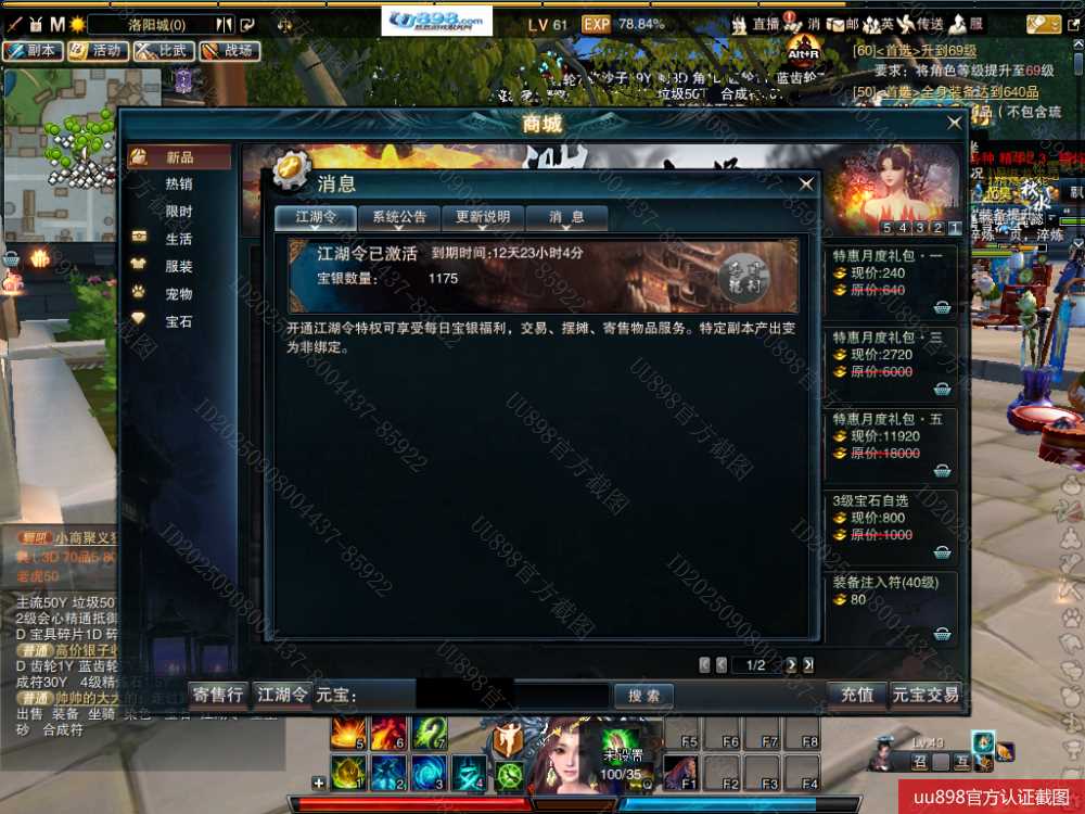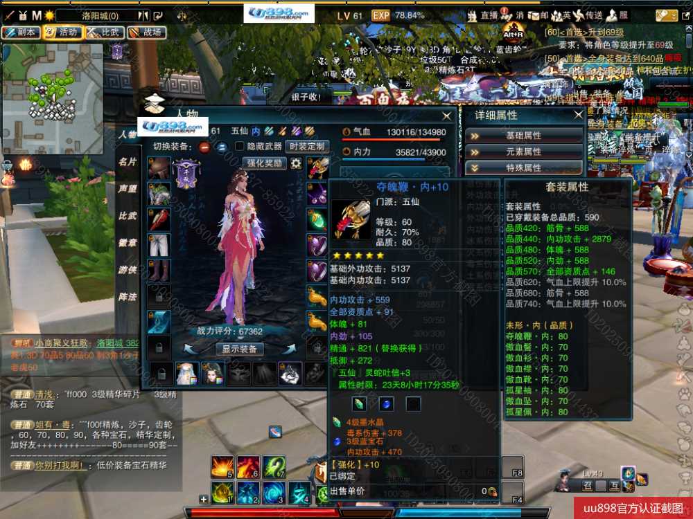 【帐号出售 五仙 女 角色等级61 江湖令剩余天数12 】双基金高战力