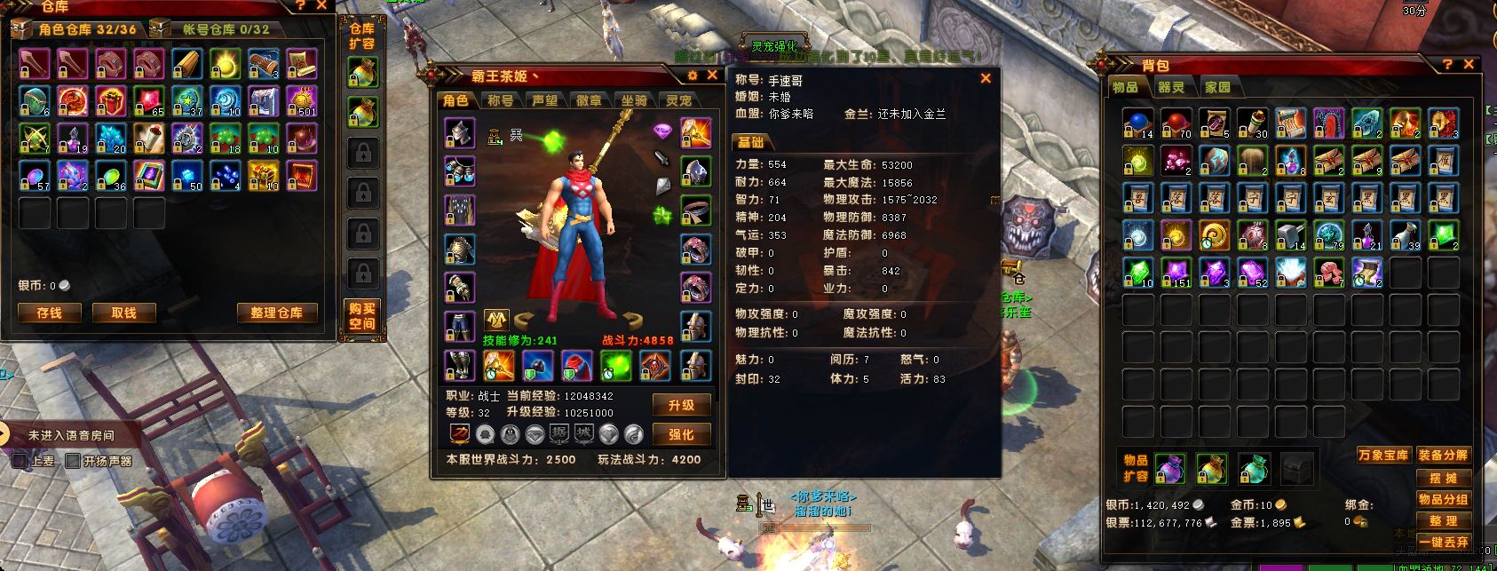 【战士 男 角色等级32 可以二次实名 】4800战士带银票1.1亿金票2000左边五件紫装金翼箱10个高级宠物技能书