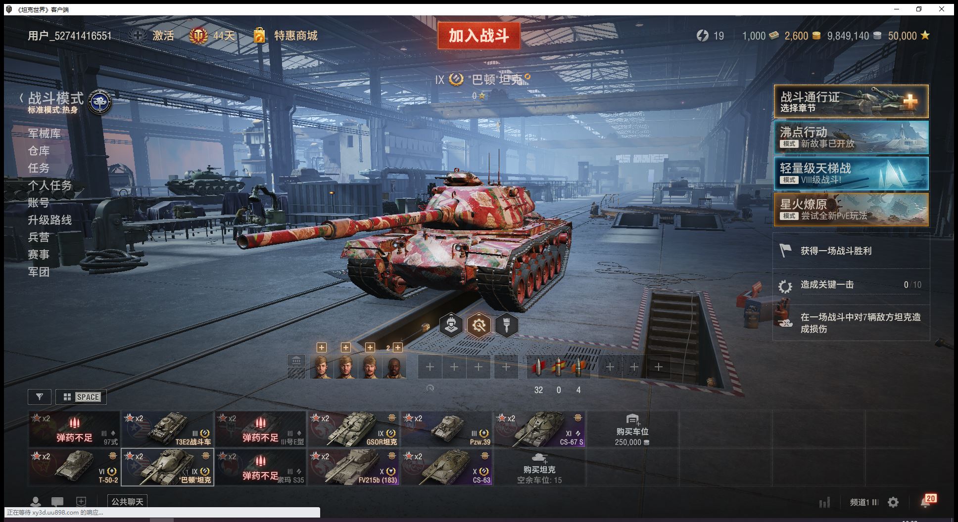 11级CS67S10级183CS632辆9级金币车巴顿坦克GSOR坦克6金T502金币2600全局5万(J37)
