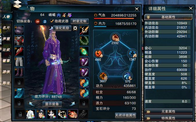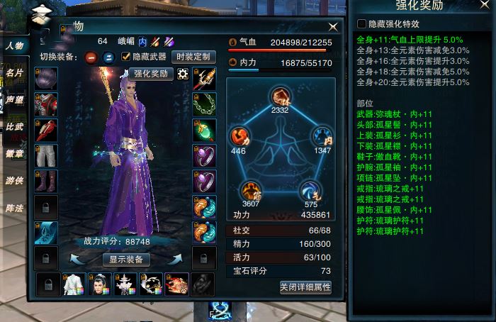 21颗4级宝石满4级气血筋骨强化满+11激活强化特效琉璃70708080极品属性