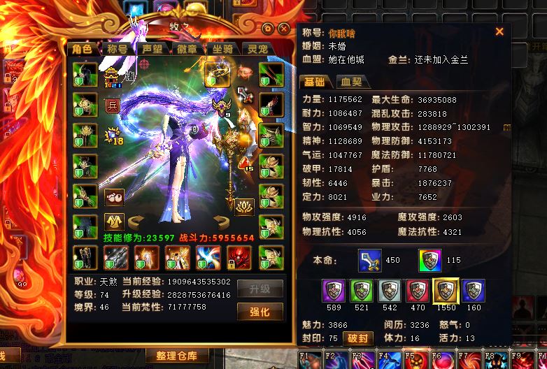 【天煞 女 角色等级74 不可以二次实名 】595万天煞,一手剑,有30天剑的皮肤,可以等半价对对碰或者等树成熟换灵石