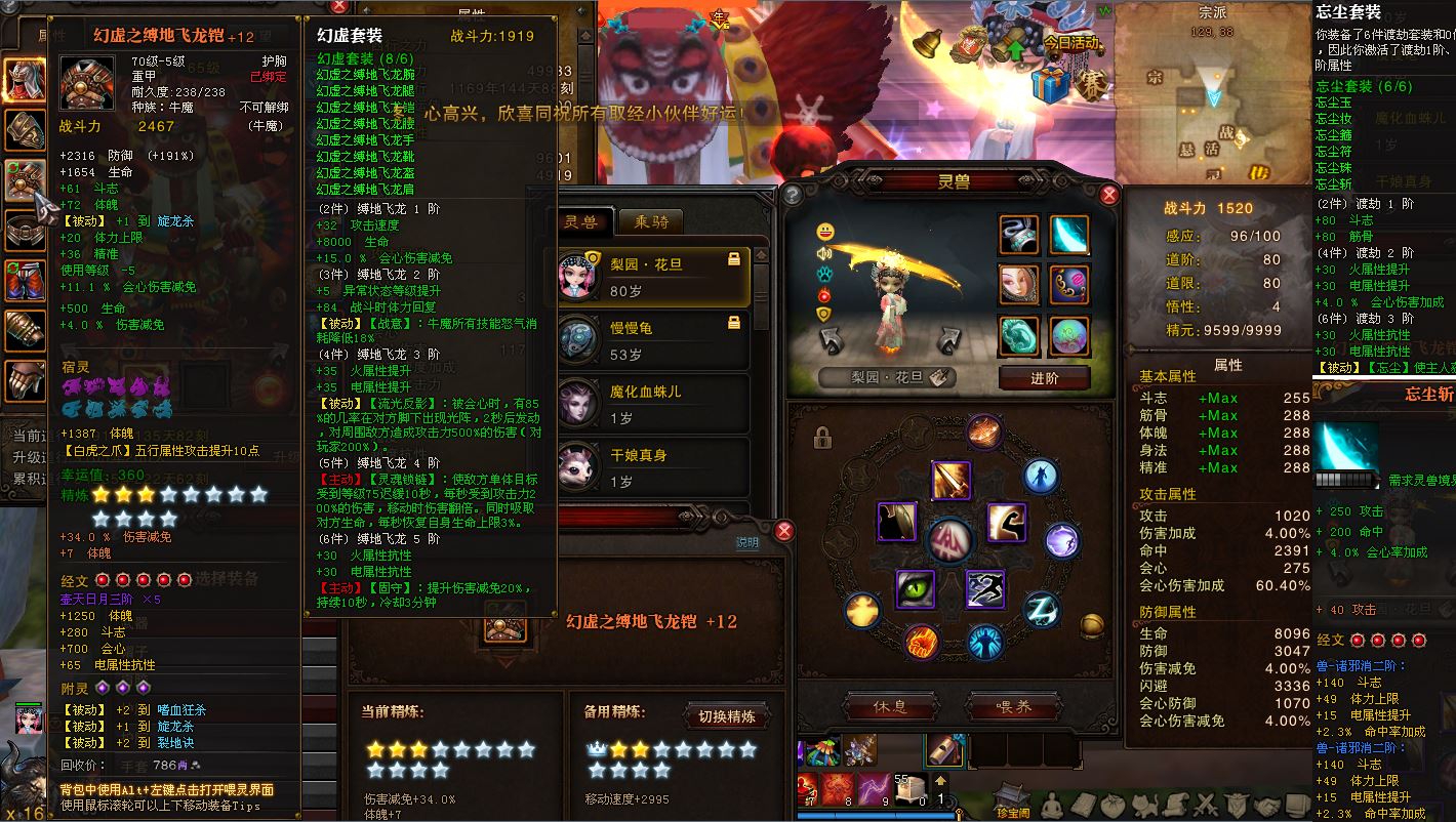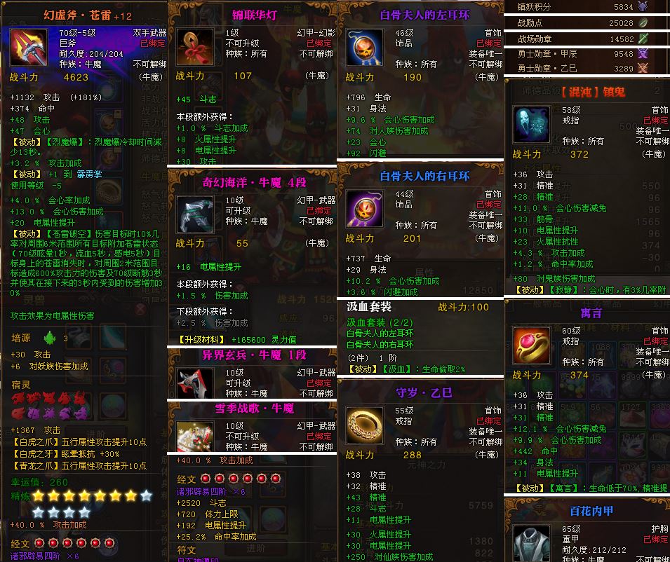 双线四区枯松涧13合1,65牛魔白骨左右耳华灯背景,2W6攻1565电提移速鞋双精炼胸,高三四70-5幻虚套40%武器元神幻虚混沌,7D花旦忘尘套蓝魔蛛冰宫坐骑,4段奇幻海洋5段燃魂之颅幻甲,V6到12月有百花改名1E绑银657幻彩。