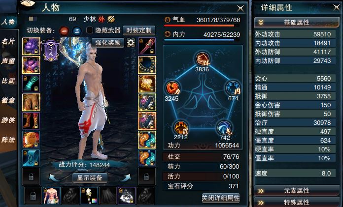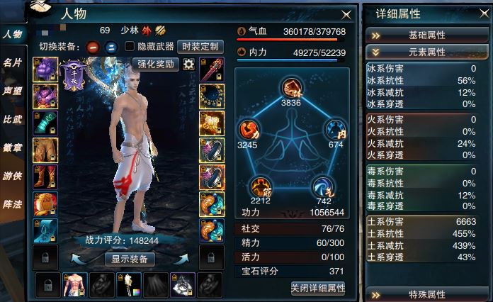 基本满5,带2个4级刺,细节少林,2个穿透戒指都花了1.5W,带老虎坐骑,33林小之,5套天花板
