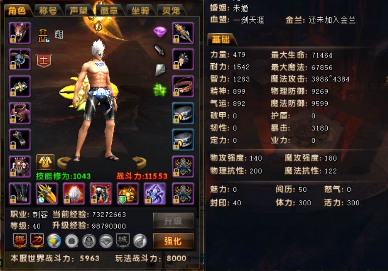 【刺客 男 角色等级40 不可以二次实名 】40级,快1.2W战力三月卡刺客