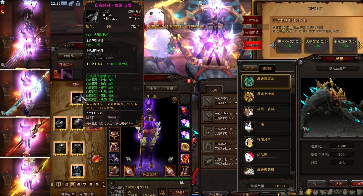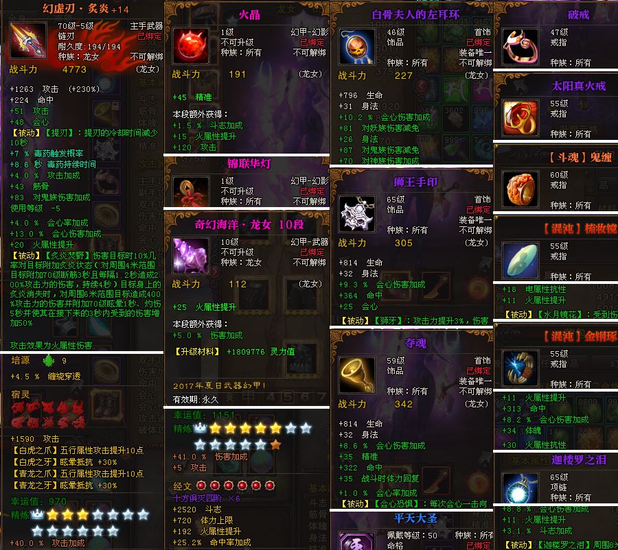 双线六区玉华州36合1,65龙女三阶小鸟特效小背景有改名,2W4攻近两千提抗52%移速鞋功体快结丹。高三幻虚套高四+14双精炼武器,70-5百花缠绵降龙172星63红头,带白骨左耳斗魂破戒真火戒狮王夺魂。10段奇幻海洋5段白夜冥灵幻甲,幽冥月灵10段紫虹未来盘龙异界拓印,7D雪娃火3忘尘13兽三蓝魔蛛七宿麟坐骑。