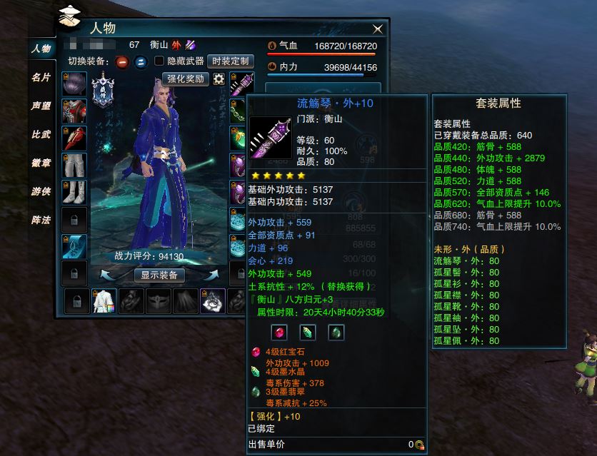 【帐号出售 衡山 男 角色等级67 江湖令剩余天数101 】20个4,7个2刺,其余3,阵石买满。资料全证件全没问题