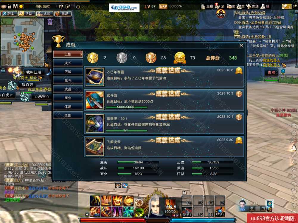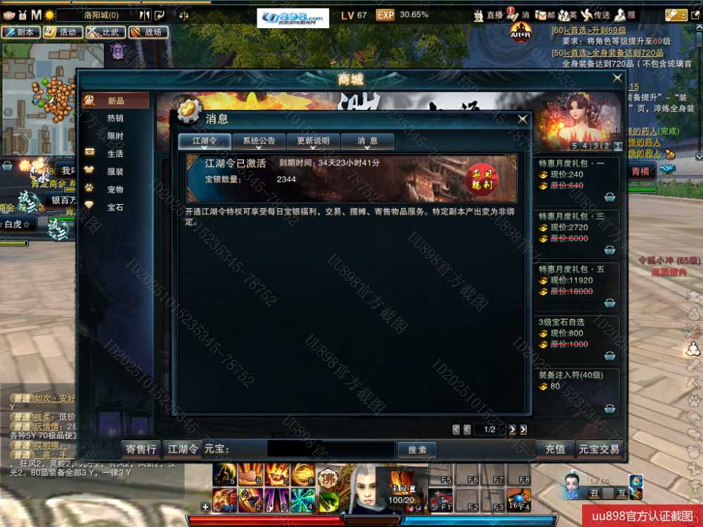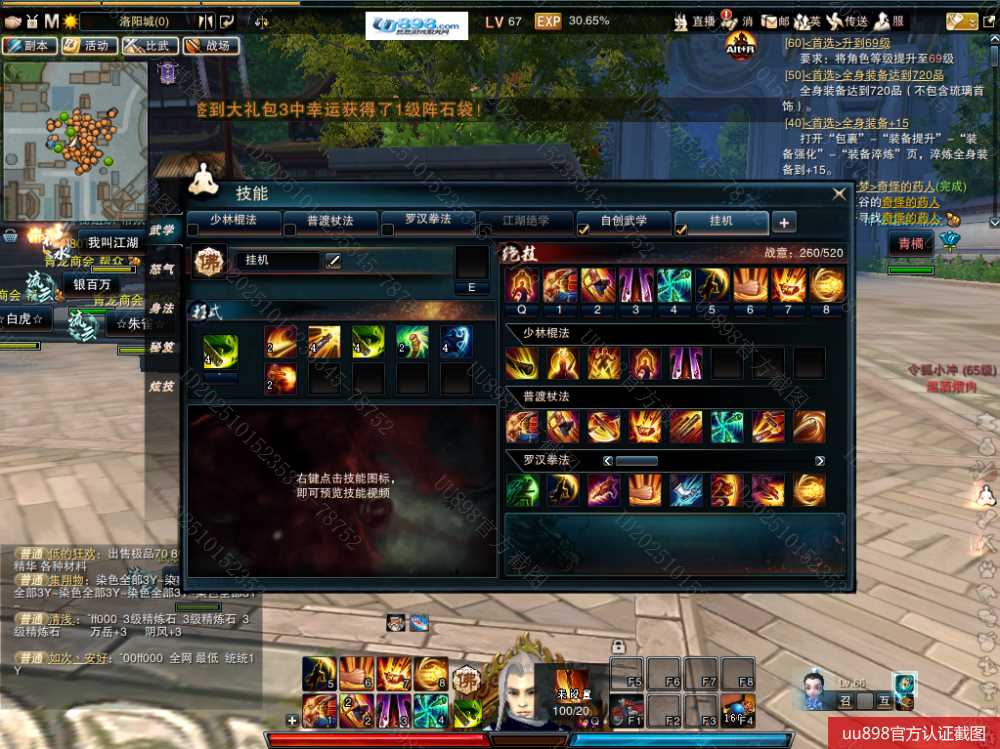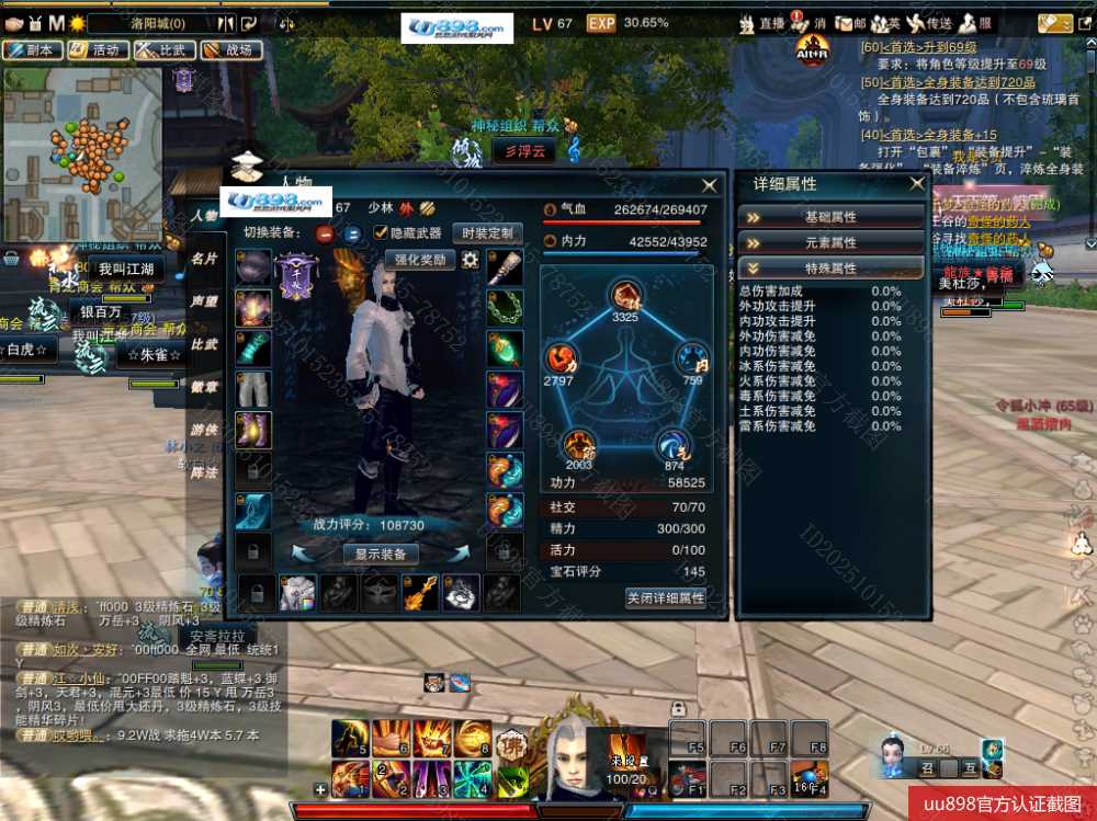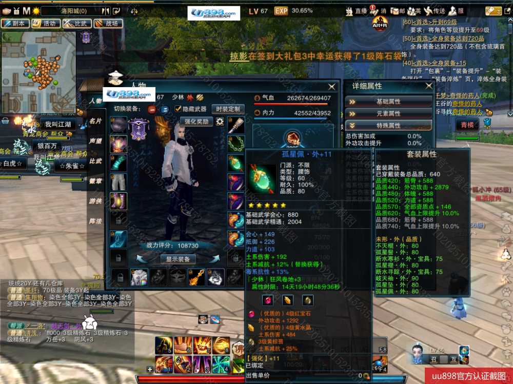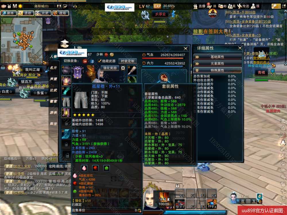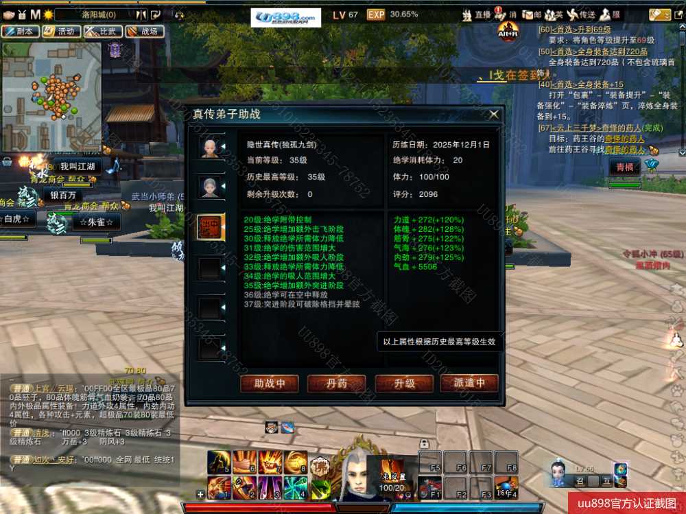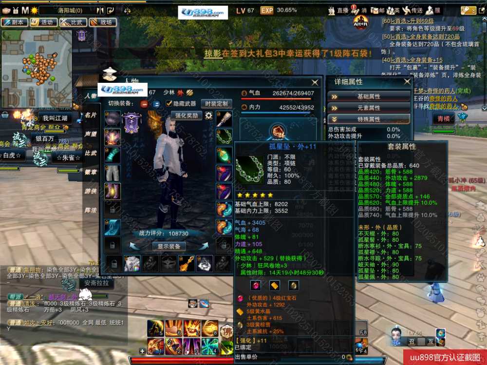 【帐号出售 少林 男 角色等级67 江湖令剩余天数35 】右边444,左边全是优质44加两颗5级土伤,8天资林小之,看图吧!!!