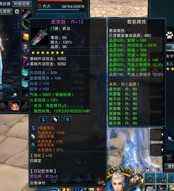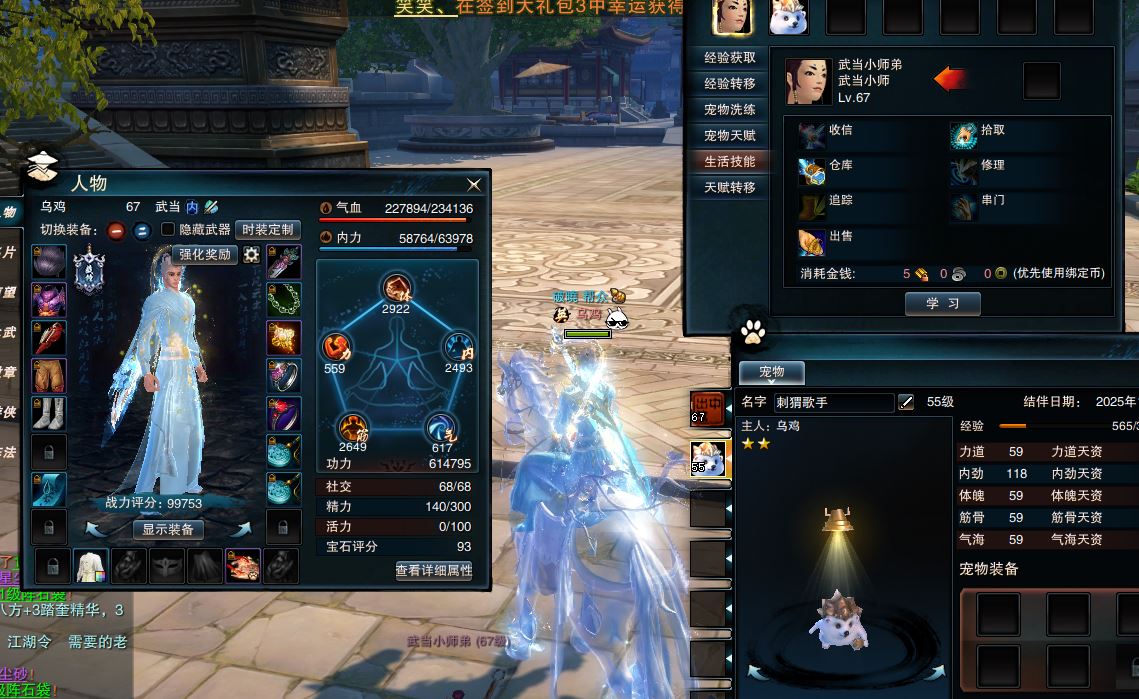 【帐号出售 武当 男 角色等级67 江湖令剩余天数88 】10W战力3个优质424个4满3有4个角9080套混搭12强化振石一直买武器外观技能炫技透明坐骑