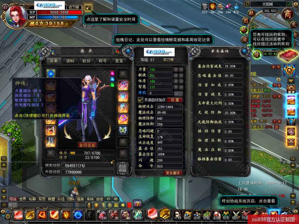 【终身找回包赔】【无法绑定支付宝 双刀客 角色等级67 女 1号2角色 】任务号