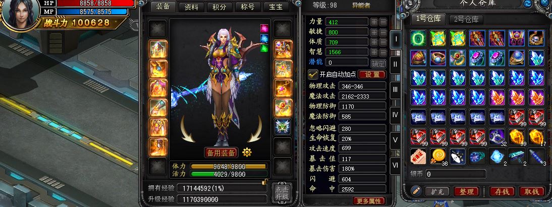 【无法绑定支付宝 异能者 女 角色等级98 】10W+战力仲裁法师,攻件+12