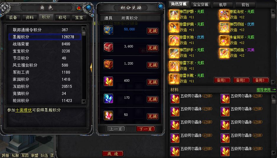 攻件全部+12,防具+11有积分,仓库开了4页。